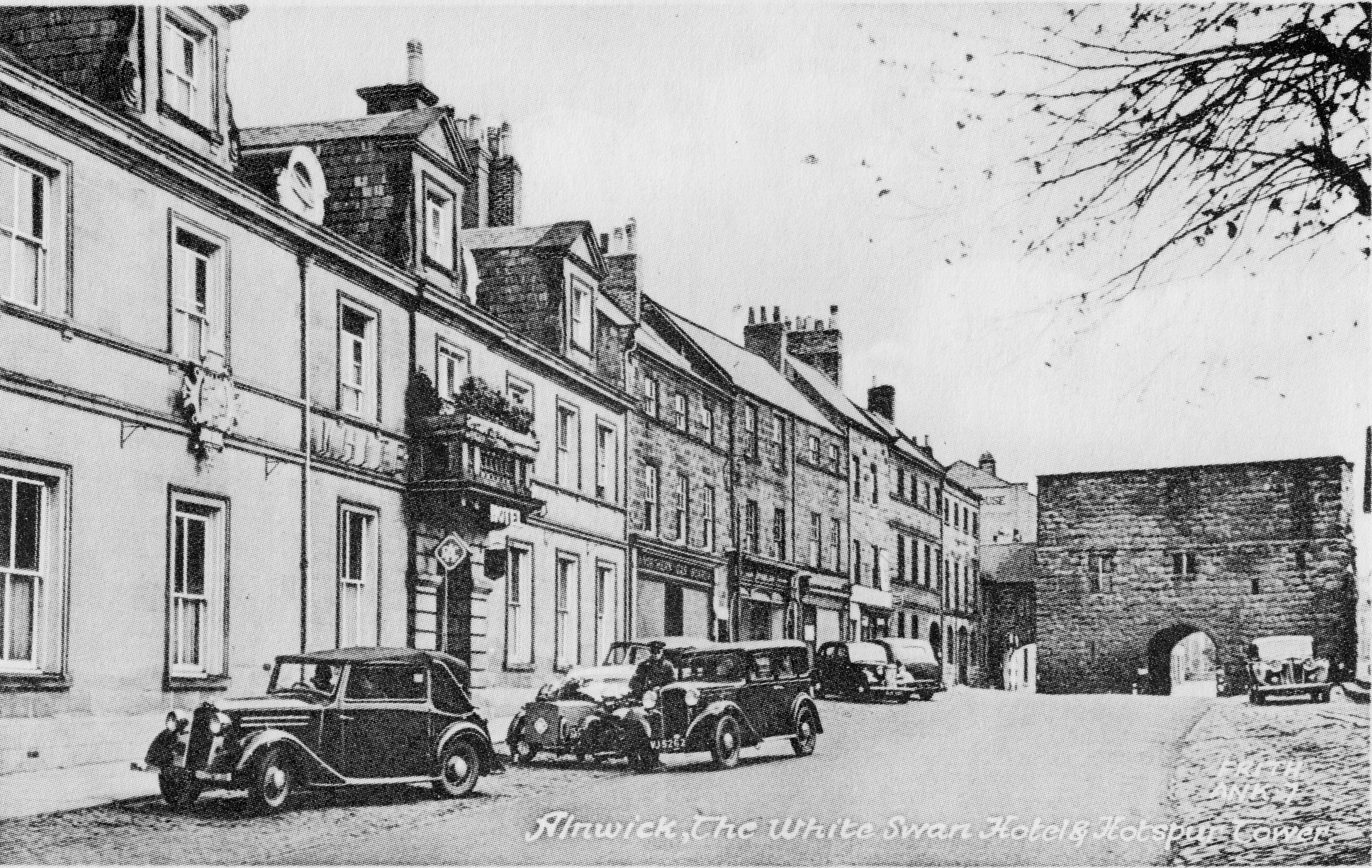 White Swan - old photo with cars