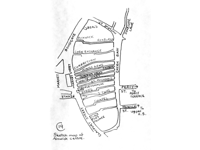 Sketch Map of Alnwick Lanes by Barbara Woodhouse