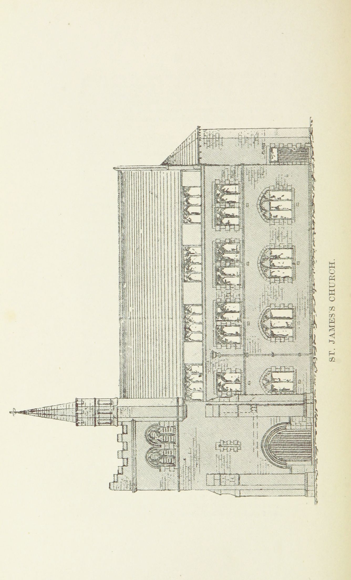 Drawing of St James Church from Skelly's history.